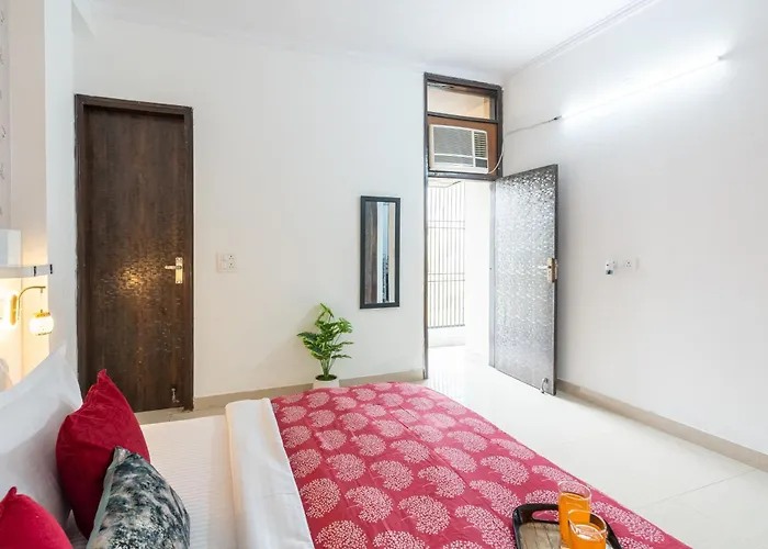 Das 2-Zimmer-Apartment Homlee-Vintage 2Bhk-Fort View-Bharat Mandapam-Ndls Neu-Delhi liegt im Herzen von Neu-Delhi und ist circa 6 km vom Mausoleum Safdar Jangs entfernt. Das 93 m² große Apartment verfügt über eine Terrasse mit einem Blick auf den Garten.